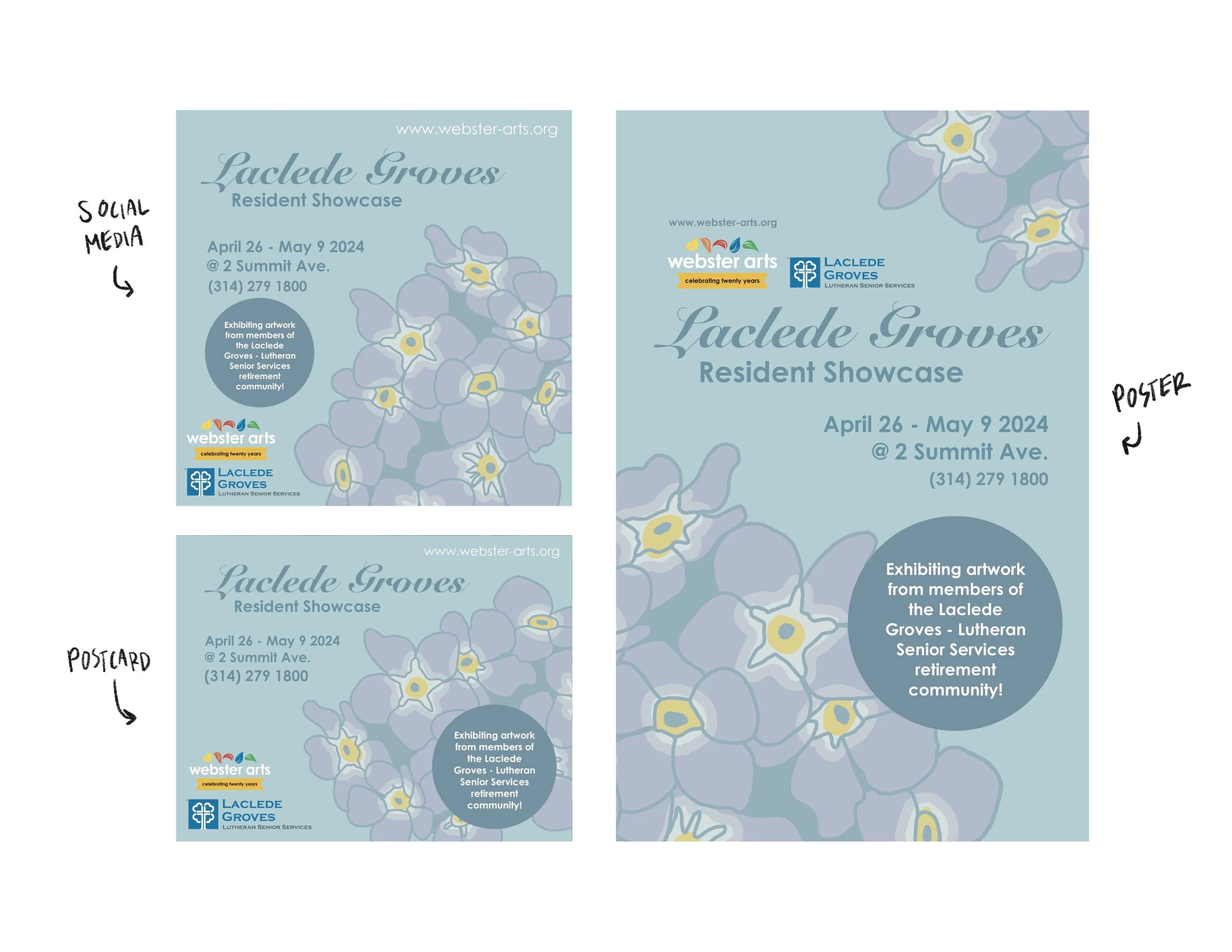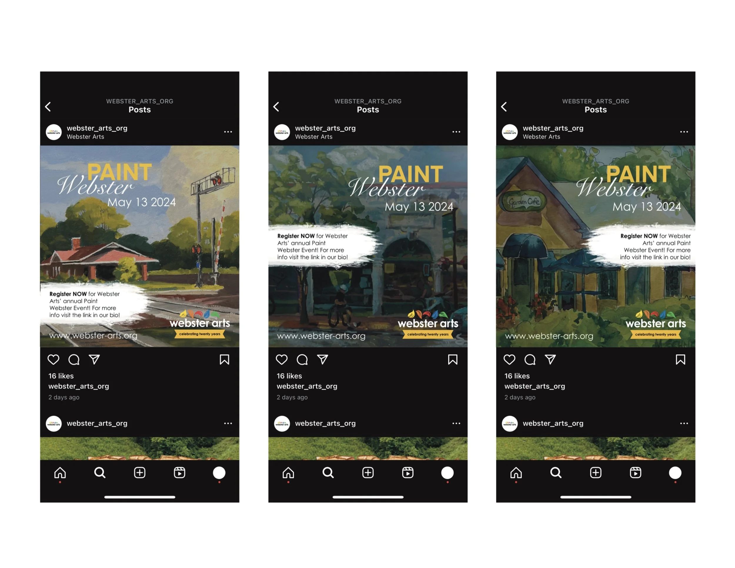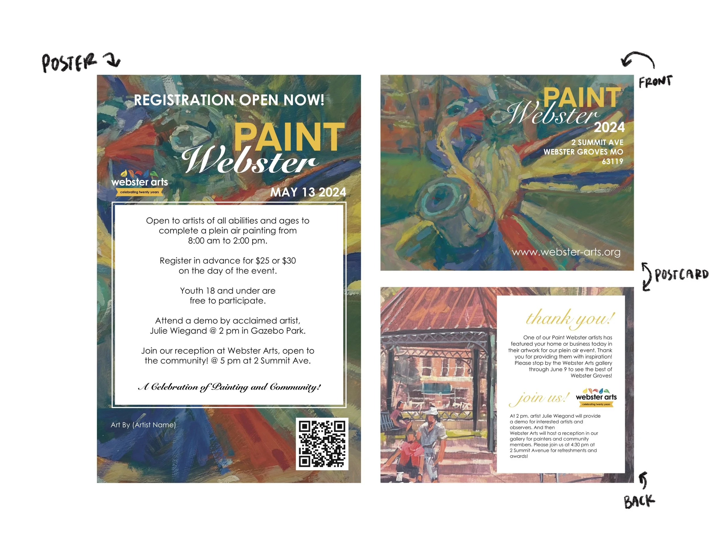 A variety of print and digital event branding for art shows hosted at Webster arts foundation throughout the year.